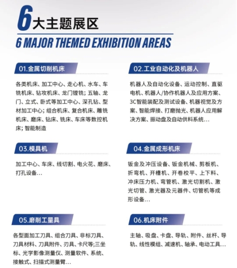 2025寧波國際機床展圍繞“金屬切削機床、金屬成形機床、工業(yè)自動化及機器人、磨削工量具、機床附件及模具機”六大核心主題,攜手500+家展商全面展示從精密加工到智能工廠的全產(chǎn)業(yè)鏈需求。