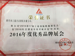 2016第17屆立嘉國際機械展覽會被評為“2016年度品牌展會”,同時重慶市立嘉會議展覽有限公司榮獲“2016年度優(yōu)秀會展企業(yè)”殊榮。這既是行業(yè)對立嘉會議展覽有限公司的認可,更是對立嘉國際機械展的肯定。有此佳績不僅是“嘉人”團隊的努力,更要感謝各級政府、相關主辦、協(xié)辦、用戶企業(yè)、參展單位以及媒體等的支持和陪伴,立嘉展將以更出色的工作邁向未來,不負眾望,愿攜手并進,共創(chuàng)輝煌。