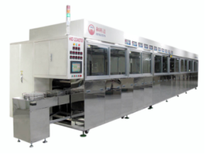 超聲波系統的應用,大大提高了對精密零部件的清洗效果。和科達(AMTS 2017 展位號:E1-C20)的全自動超聲波清洗機采用了PLC全程序控制與觸摸屏操作界面,在清洗過程中實現全自動控制,并利用機械手平穩運行。其慢拉脫水工藝能有效切除平板式零件表面水漬,防止殘留水漬干燥后留下污斑。烘干方式則采用槽式或隧道式熱風烘干,配有耐高溫高效過濾器,保證烘干腔內空氣潔凈。