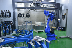 新力光(展位號:E4-B01帶來的涂裝生產線可柔性生產,即能進行汽車塑膠外殼的噴涂生產,也可進行與汽車塑膠外殼大小相近、油漆工藝相同的塑膠飾件的噴涂生產,目前噴涂產品是汽車門把手及后視鏡。新力光在設計時,就以安全、節能、環保、經濟、可靠為原則,以布局合理、參觀性好、操作性強、物流順暢、維護方便為目標,最后選定了采用機械手噴涂模式。