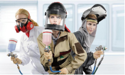美施聯科(展位號:E4-C12展示的底漆/色漆/清漆手工在線噴涂和下線修補、SATA AB1中央呼吸空氣增濕加溫器、SATA air vision 5000全面式供氣面罩、SATA vision 2000全面式供氣面罩,能夠進行全方位的呼吸健康安全防護,保護呼吸系統、頭部的眼睛、耳朵、口鼻等重要器官、皮膚及毛發不受粉塵和漆霧的侵害,而且這些產品通過中國LA認證、歐盟CE認證和美國NIOSH認證。噴漆技師呼吸的空氣來自于經層層精細過濾后的壓縮空氣,呼吸空氣的來源與所處工作環境的空氣徹底隔絕;且呼吸空氣的溫濕度可以調整至最舒適的狀體,不受外界氣溫濕度影響,整套呼吸保護是不含硅、抗溶劑和防靜電的安全系統。