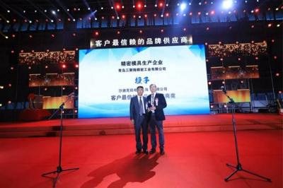 接下來是青島三聚隆精密工業(yè)有限公司的技術(shù)總監(jiān)王棟先生頒給沙迪克機(jī)電(上海)有限公司北方部副部長(zhǎng)劉春明