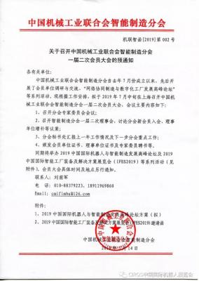 關于召開中國機械工業聯合會智能制造分會一屆二次會員大會的預通知