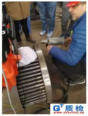 最近我公司從意大利IMG公司引進了采用超聲波的方法,對換熱器管板角焊縫進行檢驗,解決了長期以來無法采用超聲波對換熱器管板角焊縫檢驗的世界性難題,并在中國石化達州基地和天津石化裝備研究院演示成功。該方法能夠檢測出焊縫的氣孔、夾渣和裂紋等缺陷,而且速度快、成本低、危害少、污染少等特點,采用這個技術(shù)每小時可以檢驗40-50個管口,將大大的提供檢驗效率。