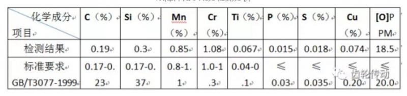 由以上檢測報告可以看出,該失效齒輪的精度為8級,齒距誤差、累積誤差均在6級以內,齒圈跳動為≤0.05mm。由此可見,齒輪切齒加工工序沒有什么問題。