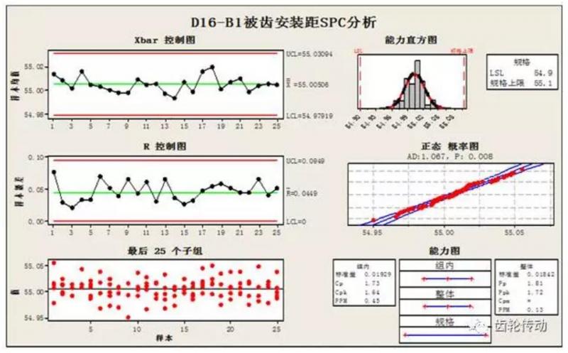 為了保證本批被齒安裝的一致性,用SPC《質量工具》來分析安裝距的過程能力: