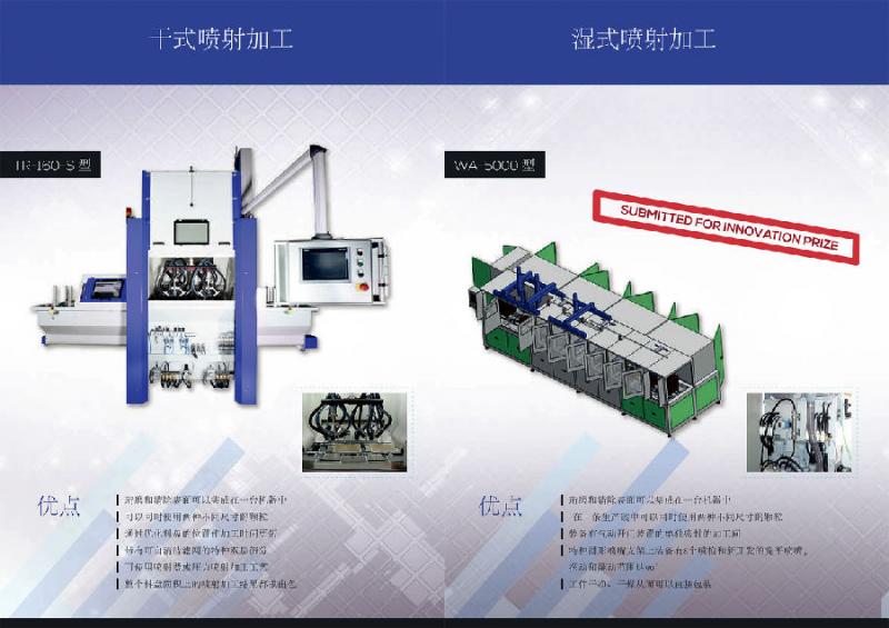 2、噴砂(丸)是用壓縮空氣作為動力將直徑在40~120目的砂或0.1~2.0左右的丸噴向工件的表面,使工件達到同樣的效果。丸粒的大小不同,達到的處理效果就不一樣.重點提出:噴丸同樣能起到強化的作用。現在國內的設備走進了一個誤區,認為只有拋丸才能達到強化的目的。美國、日本的企業用于強化的是拋噴丸并用的!各有各的優勢。比如象齒輪這樣的工件,拋丸的出丸角度無法改變,只能用變頻改變初速度。但它處理的量大,速度快,而噴丸則正好于之相反,拋丸的效果就沒有噴丸的效果好。